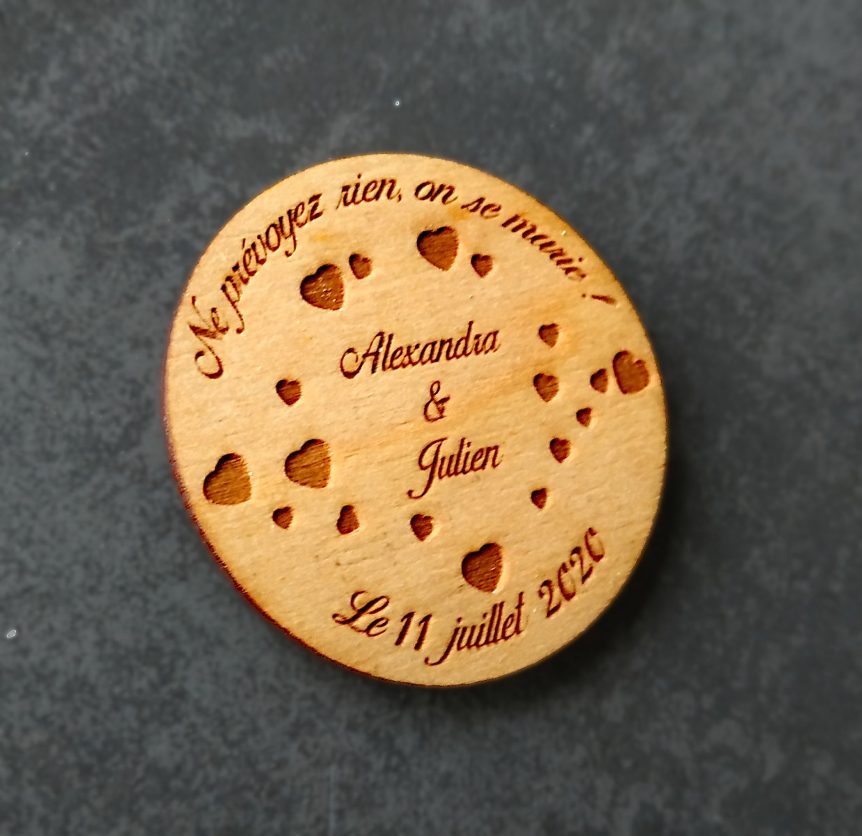 Grâce à la gravure, chaque pièce devient unique et significative, parfaitement adaptée à votre célébration.