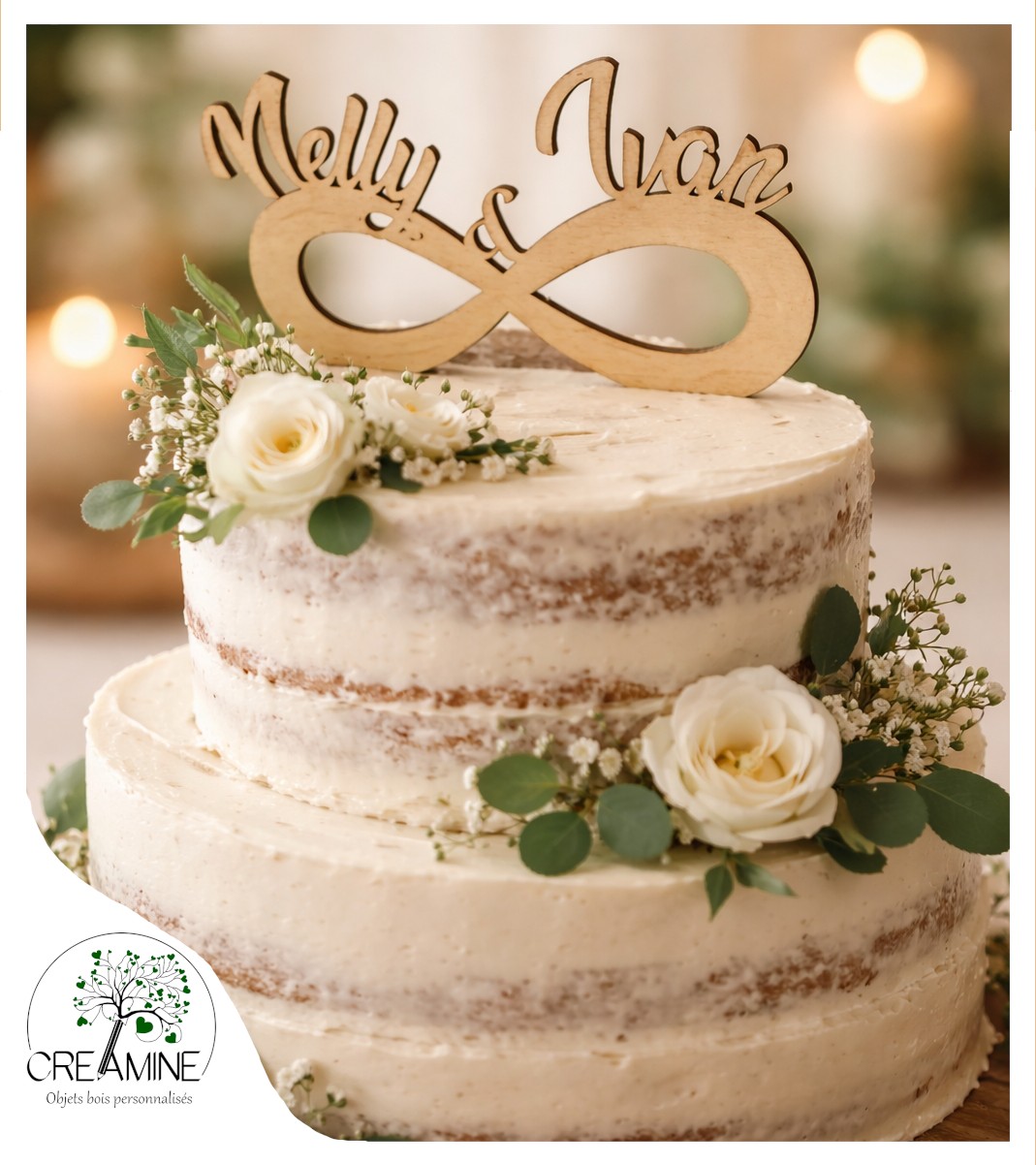 Topper Infini en bois personnalisé – Élégance & souvenir unique