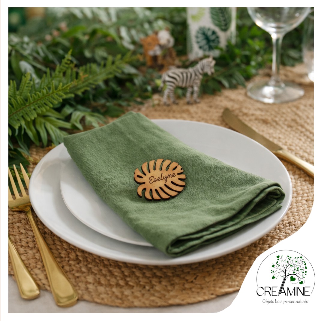 Apportez une touche naturelle, élégante et tropicale à votre décoration de table avec ce marque-place en bois en forme de feuille de Monstera. Idéal pour une table de fête sur le thème jungle, bohème ou tropical, il sublime vos événements tout en guidant vos invités avec raffinement.