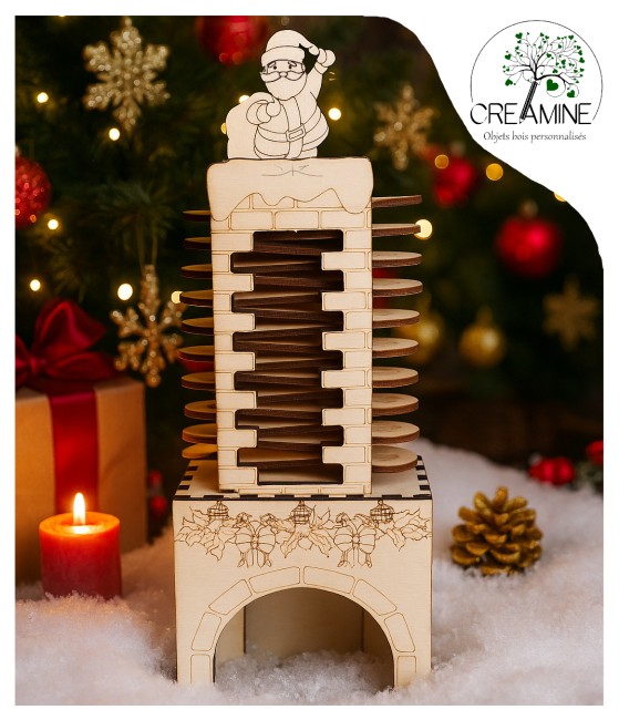 Chaque jour, votre enfant pourra trouver dans la cheminée un petit cadeau qui l'aidera à patienter jusqu'à noël. Et le 24 au matin, c'est le père noël qui se trouvera dans la cheminée.
