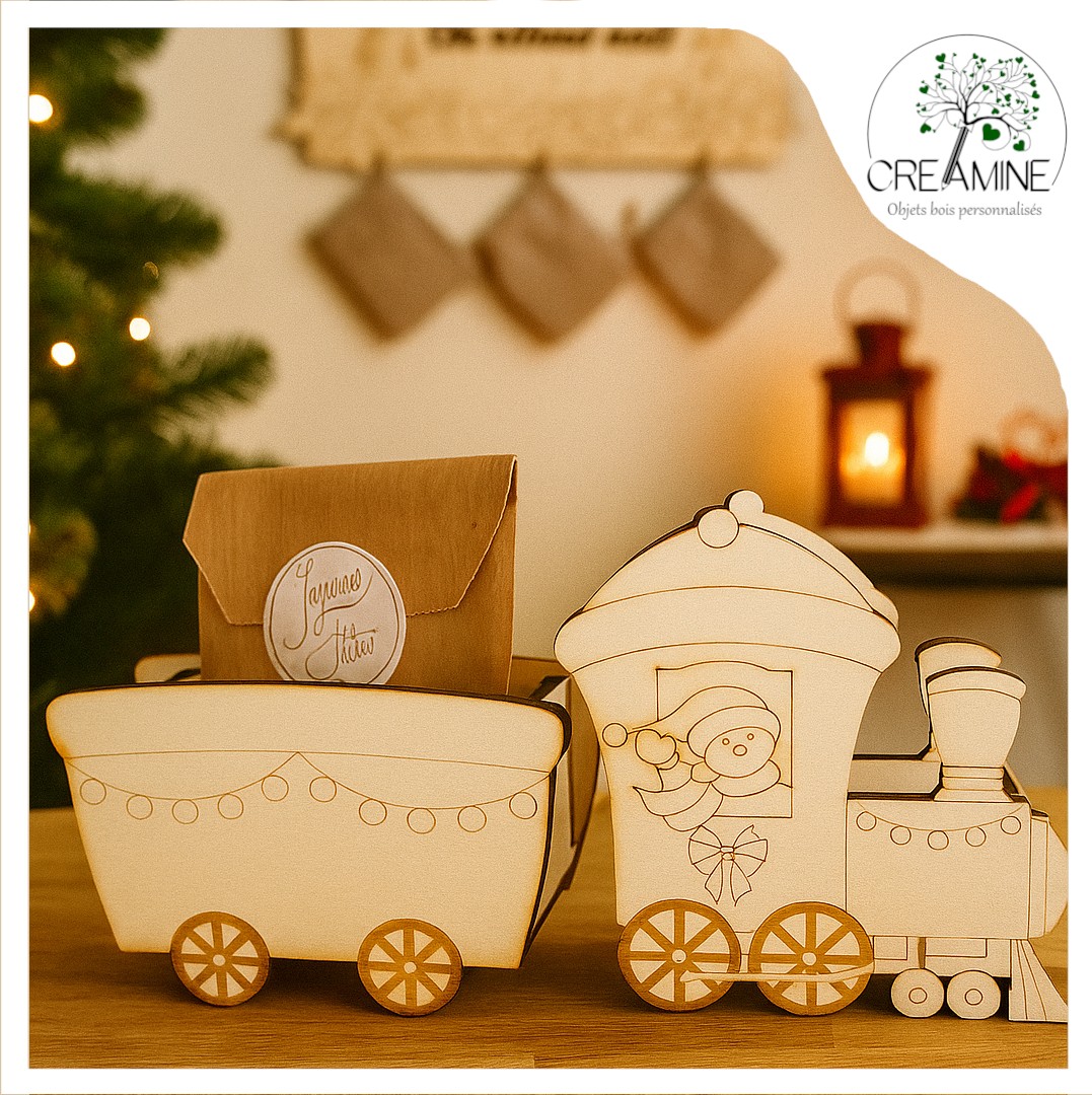 Envie que votre calednrier de l'avent participe à votre décoratioin de noël ? Le petit train en bois est fait pour vous et votre famille.