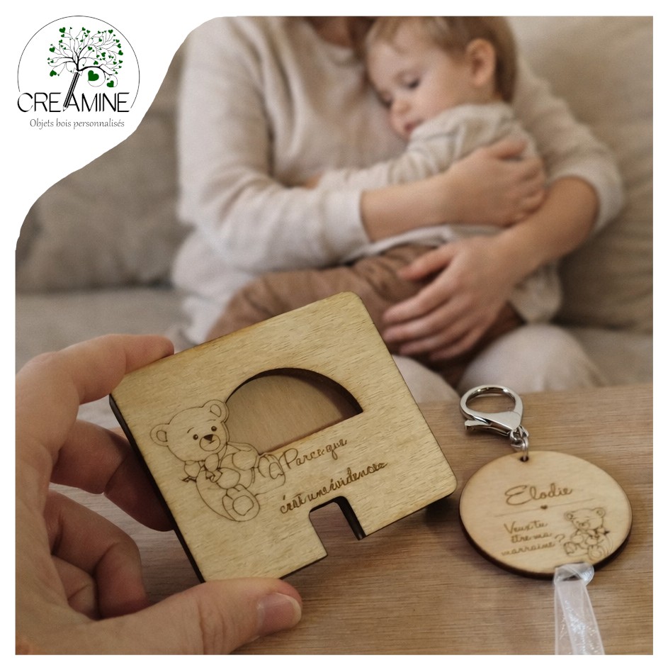 Chaque annonce est ainsi unique, pensée spécialement pour la personne qui la reçoit et votre objet se transforme ensuite en porte clé qui ancrera de manière intemporel cette jolie demande.