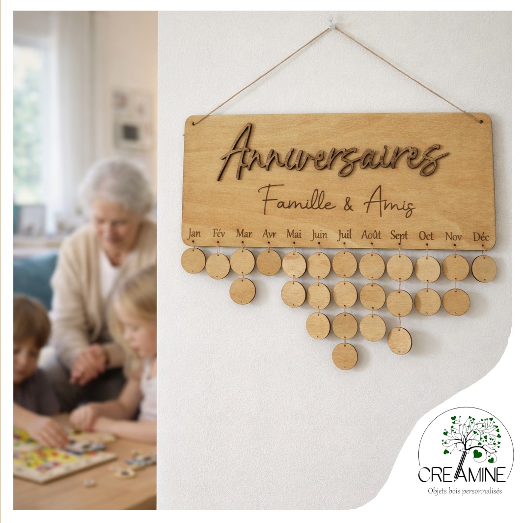 Offrez à votre mamie chérie un cadeau qui a du sens et qui dure toute l’année : ce calendrier des anniversaires éternel en bois, conçu pour garder en mémoire les dates importantes de toute la famille.
